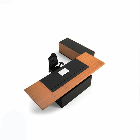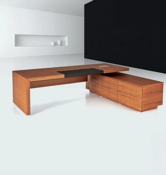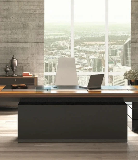 Sleek, high-end furniture with side storage, premium materials, and adjustable seating for leadership spaces.
