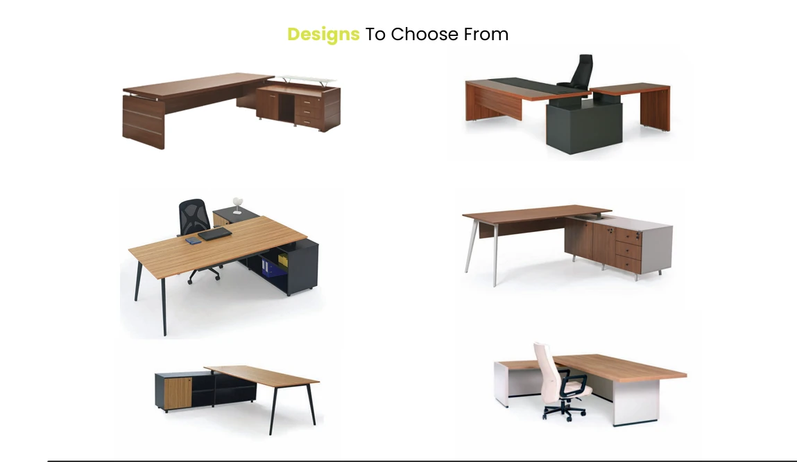 Modular workstations, executive desks & chairs, reception counters, file cabinets, drawer units, bookcases, conference &