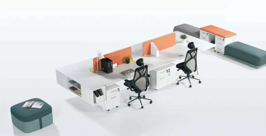 Flexible, multi-use desks that support casual meetings, brainstorming sessions, or breakout zones.