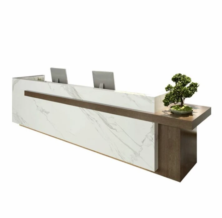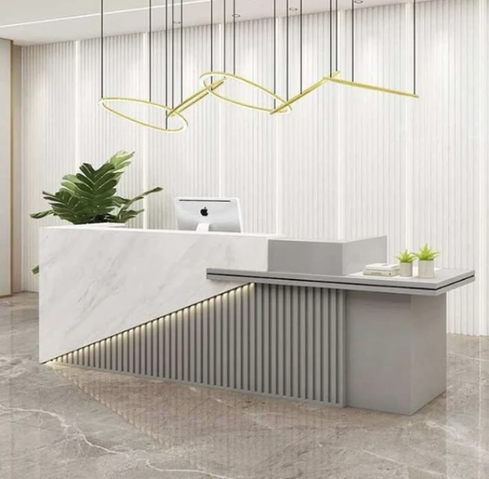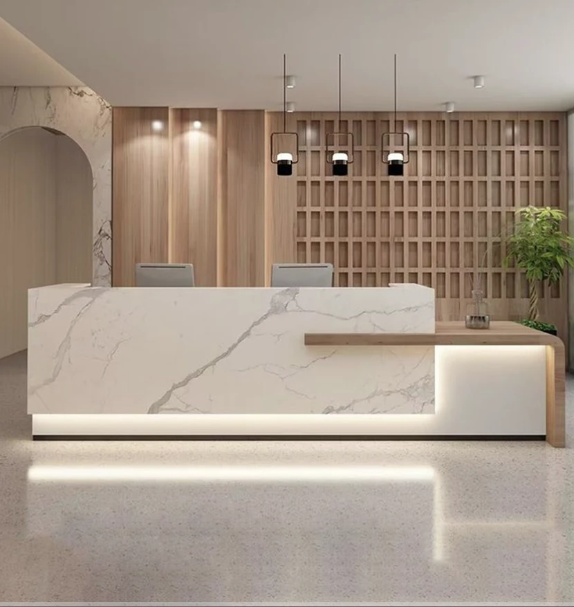 First-impression desks that blend form and function — customizable with brand colors and concealed wiring.